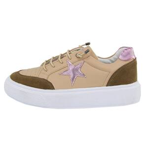 Tenis Feminino Casual Camurça Fechamento Cadarço Aplicaçao Estrela Palmilha Gel Macia Dia a Dia - 38 - Bege