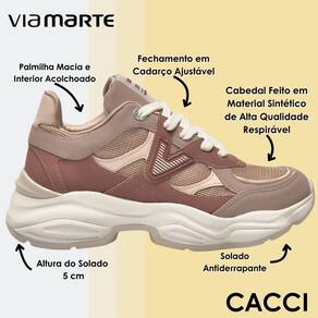 A sola Chunky, com seus 5 cm de altura, garante estabilidade, amortecimento eficiente e um toque extra de estilo. O interior macio e os materiais de qualidade envolvem os pés com conforto absoluto, permitindo que você encare a rotina com segurança e confiança. Um tênis pensado para mulheres que gostam de caminhar com estilo, sem abrir mão do bem-estar.