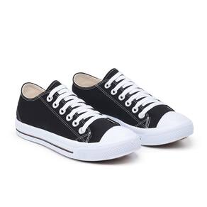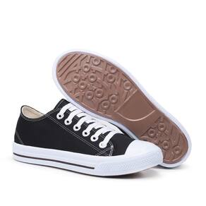 Tênis Feminino Casual Confortável Solado Reto Cadarço - 34 - Preto