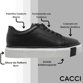 Tenis Feminino Casual Conforto Flatform Cacci - 40 - Preto
