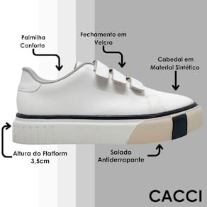 Fácil de Calçar: Com um sistema de fechamento prático autocolante, o Tênis Cacci é fácil de calçar e se ajusta perfeitamente aos seus pés.