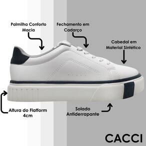 Design Moderno e Versátil: Com um visual contemporâneo e sofisticado, o Tênis Flatform Cacci é perfeito para complementar qualquer look, desde o casual até o mais elaborado.