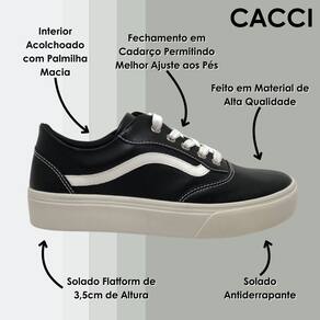 Dê um toque de sofisticação ao seu visual com o Tênis Feminino Casual Cacci! Combinando modernidade e elegância, é o calçado perfeito para qualquer ocasião. Adquira o seu agora e experimente o melhor em conforto e estilo!