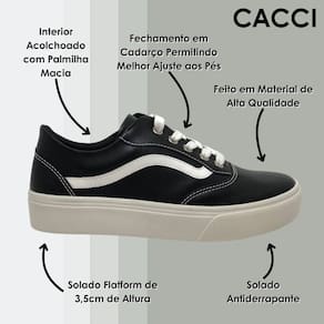 Dê um toque de sofisticação ao seu visual com o Tênis Feminino Casual Cacci! Combinando modernidade e elegância, é o calçado perfeito para qualquer ocasião. Adquira o seu agora e experimente o melhor em conforto e estilo!