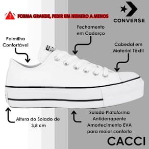 O Converse Chuck Taylor All Star é um dos tênis mais icônicos e reconhecíveis do mundo da moda. Seu design atemporal e versátil combina com uma ampla variedade de roupas e estilos, permitindo que você crie looks casuais, despojados e cheios de personalidade.