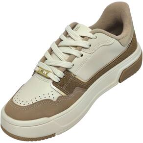 Outro destaque vai para a palmilha macia, que oferece amortecimento ideal para o uso prolongado. O detalhe metálico com o logo da marca nos cadarços adiciona um toque extra de elegância. Esse modelo é ideal para quem busca um visual casual com informação de moda, podendo ser utilizado com jeans, vestidos, saias ou até looks esportivos mais despojados.