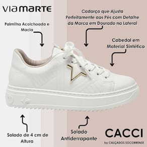 O tênis Via Marte é a escolha perfeita para quem busca estilo, conforto e um visual único. Seu solado Flatform proporciona estabilidade e conforto durante a caminhada. Seu design moderno e cuidadosamente elaborado, com costuras detalhadas, garante um charme diferenciado. Conta também com um belo enfeite em sua lateral que complementa o design único do tênis. Além disso, o interior acolchoado e os materiais de alta qualidade asseguram o máximo conforto aos seus pés. O tênis Via Marte é a opção versátil e elegante que oferece estilo e bem-estar em todas as ocasiões.