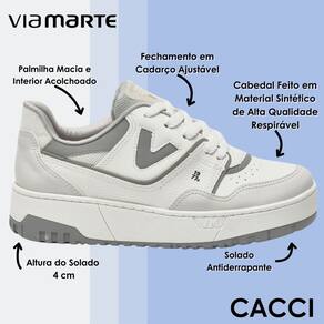 O tênis Via Marte é a definição de estilo e conforto para o dia a dia. Com um design contemporâneo e acabamento sofisticado, ele se encaixa perfeitamente nas mais diversas combinações — de looks casuais com jeans e camiseta básica até produções mais elaboradas com vestidos fluidos, conjuntos de alfaiataria ou saias midi. Sua paleta neutra em branco e cinza facilita na hora de montar composições modernas e versáteis, garantindo um toque urbano e atual ao visual. O solado flatform proporciona uma base estável e extremamente confortável, ideal para quem passa horas fora de casa sem abrir mão da elegância. Seja para um dia de compromissos no trabalho, uma tarde de passeio no shopping, um encontro com as amigas ou até mesmo para viagens e momentos de lazer, esse tênis acompanha você com estilo em qualquer ocasião.