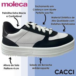 Outro ponto que merece destaque é o solado flatform de 4 cm, que além de dar uma leve elevada à silhueta, proporciona mais estabilidade e conforto ao caminhar. Feito em borracha com tecnologia antiderrapante, ele assegura aderência ao solo em diferentes tipos de superfície, ajudando a evitar escorregões e garantindo tranquilidade ao longo do dia. O Tênis Moleca 5782.313 é mais do que um item de moda: é um aliado para quem busca autenticidade, conforto e confiança em cada passo.