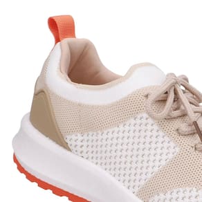 O cabedal confeccionado em tecido tricot garante respirabilidade e flexibilidade, permitindo que o calçado se molde aos contornos dos pés com suavidade. A palmilha possui tecnologia de memória permanente, que registra o formato dos pés e mantém o conforto a cada novo uso. Essa característica torna o modelo perfeito para quem preza por um encaixe anatômico e sensação contínua de maciez.