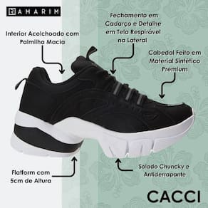 Solado chunky antiderrapante: Oferece estilo e segurança, proporcionando passos firmes e estáveis em qualquer superfície, além de um visual robusto e marcante.