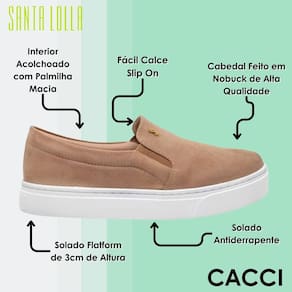 O modelo slip on proporciona praticidade, sendo fácil de calçar e garantindo um ajuste perfeito aos pés. Perfeito para quem busca agilidade e conforto, sem perder o charme e a elegância.