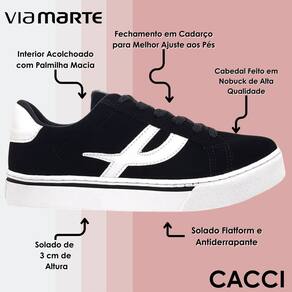 O Tênis Via Marte Casual Feminino é ideal para quem busca conforto e estilo no dia a dia. Feito de nobuck, um material resistente e elegante, oferece uma textura suave e aparência sofisticada.