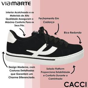 Seu fechamento em cadarço permite um ajuste firme e personalizado, enquanto seu estilo casual é perfeito para diversas ocasiões informais, como passeios, encontros com amigos ou uso diário. Desenvolvido com foco no bem-estar dos pés, a sua palmilha macia e seu interior acolchoado proporciona um caminhar confortável e seguro.