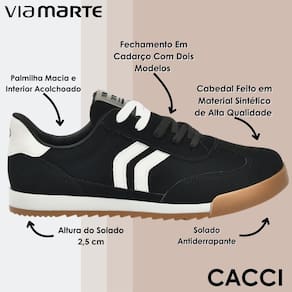 O tênis Via Marte é a opção perfeita para quem busca unir conforto, versatilidade e um toque de estilo para o dia a dia. Produzido com cabedal em material sintético de alta qualidade, oferece resistência e ótimo acabamento, garantindo durabilidade mesmo com uso frequente. Seu interior acolchoado com palmilha macia proporciona bem-estar durante todo o tempo de uso, enquanto o fechamento em cadarço com dois modelos oferece um ajuste seguro e personalizado à parte interna dos pés. Com altura de solado de 2,5 cm, ele mantém a estabilidade sem abrir mão da leveza, e o solado antiderrapante garante firmeza ao caminhar em diferentes tipos de superfícies. Este modelo combina perfeitamente com produções casuais e despojadas, sendo ideal para passeios, momentos de lazer, compromissos informais e até para complementar looks mais urbanos, garantindo que você esteja sempre confortável e no estilo.