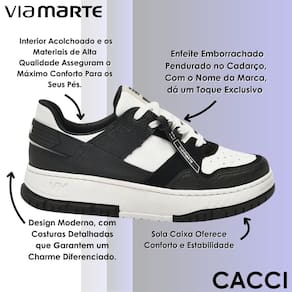 O tênis casual Via Marte une design moderno e conforto para acompanhar sua rotina com muito estilo. Seu interior acolchoado, aliado aos materiais de alta qualidade, garante uma sensação macia e aconchegante a cada passo, mantendo os pés confortáveis durante todo o dia. O fechamento em cadarço oferece ajuste seguro, enquanto o enfeite emborrachado com o nome da marca adiciona um toque exclusivo e sofisticado ao modelo. As costuras detalhadas valorizam o visual, trazendo um charme diferenciado que combina com produções casuais ou mais elaboradas. O bico arredondado complementa o design, proporcionando um caimento harmonioso no pé e reforçando seu apelo versátil. O solado caixa, além de garantir estabilidade, contribui para um caminhar seguro e confortável, tornando o calçado ideal para longos períodos de uso. Perfeito para combinar com diferentes peças do guarda-roupa, desde jeans e calças alfaiataria até vestidos e saias, é a escolha certa para quem busca praticidade, estilo e bem-estar no dia a dia.