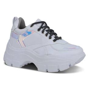 Tênis Feminino Chunky Tratorado Metalizado Cadarço Casual - 31 - Branco