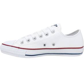O tênis mais tradicional da Converse All Star confeccionado em material sintético semelhante ao couro. Os cadarços seguem a cor das costuras e da vira da borracha. A palmilha interna oferece conforto o dia todo, enquanto as cores básicas presentes neste modelo, inspiradas no estilo esportivo da década de 90, trazem um ar retrô e descomplicado. Os passadores aparecem na tonalidade prateada, incluindo os dois laterais responsáveis pela transpiração adequada dos pés. O logo Converse All Star aparece na tag aplicada no calcanhar. Um modelo simples, confortável e cheio de estilo.