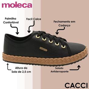 O Tênis Casual Feminino Moleca é lindo!Confeccionado em material sintético, seu material interno em tecido, possui palmilha em tecido espumado, para maior conforto, solado em pvc com frisos antiderrapantes, para maior segurança e detalhes, que deixam o modelo ainda mais bonito.