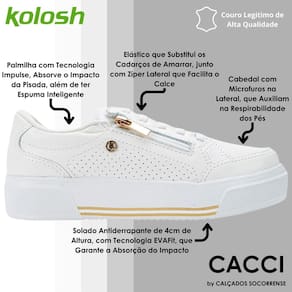 Com um peso de 0,534 kg, este tênis é leve e prático, ideal para quem valoriza conforto e estilo sem abrir mão da funcionalidade. Seja para um passeio descontraído ou para enfrentar o corre-corre do dia a dia, o tênis Kolosh é uma escolha que combina moda, conforto e praticidade.
