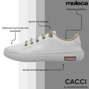 A palmilha macia e o solado flexível oferecem suporte e amortecimento adicionais, permitindo uma experiência de uso confortável durante todo o dia. Seja para um passeio descontraído com amigos ou para uma atividade do dia a dia, este tênis Moleca é a escolha perfeita para quem busca estilo, conforto e praticidade em um único calçado.