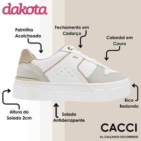 Este tênis Dakota combina o melhor dos mundos, oferecendo um visual moderno e despojado com a comodidade de uma sola flatform e o toque sofisticado dos detalhes. Com a sua construção em material sintético de alta qualidade, também garante durabilidade e facilidade de manutenção. Adicione esse tênis ao seu guarda-roupa e esteja preparada para destacar-se com um visual contemporâneo e cheio de estilo.
