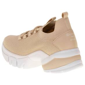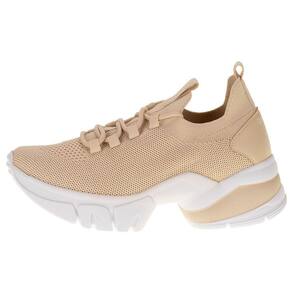 O Tênis Feminino Dad Sneaker Ramarim é confeccionado em tecido knit GYM com acabamento em costura, fechamento por cadarço de amarração, puxador traseiro em tecido, forro interno em têxtil, palmilha em PU e solado em borracha de alta qualidade com cinco centímetros de espessura.
