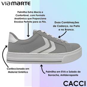 Este modelo da Via Marte é perfeito para quem busca estilo urbano com conforto absoluto, combinando praticidade e um visual moderno que se adapta facilmente a diferentes ocasiões do dia a dia. Confeccionado em material sintético de alta qualidade, proporciona durabilidade e resistência, mantendo o visual sempre bem apresentado mesmo com o uso frequente. A palmilha em EVA com formato anatômico é extremamente macia e confortável, oferecendo encaixe ideal para os pés e suporte adequado ao caminhar, ideal para quem valoriza bem-estar em cada passo. O solado em material emborrachado antiderrapante garante segurança em diferentes tipos de solo, promovendo estabilidade e firmeza ao caminhar. Acompanha duas combinações de cadarço para você personalizar conforme seu estilo, permitindo variar o visual sempre que quiser. O design versátil permite uso em ambientes casuais, passeios ao ar livre, compromissos cotidianos, ambientes descontraídos de trabalho ou estudos, além de ser uma excelente escolha para quem precisa de um calçado prático, confortável e com atitude. Este é o tipo de calçado que completa o visual e ainda entrega o conforto que seus pés merecem em todos os momentos.