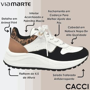 O Tênis casual jogging da Via Marte é a escolha ideal para quem valoriza conforto e estilo. Seu solado tratorado, inspirado no estilo jogging, proporciona uma caminhada suave e flexível, garantindo o máximo de conforto para seus pés. O modelo apresenta uma combinação perfeita do nobuck, napa e o seu detalhe em brilho maxi na parte traseira do seu cabedal, as cores e detalhes resultam em um design exclusivo e sofisticado. Seja para um passeio descontraído ou um compromisso casual, esse tênis se adapta perfeitamente a diferentes looks, acrescentando um toque de elegância a qualquer momento do seu dia