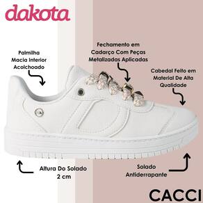 Versátil como você precisa, o Tênis Dakota é perfeito para passeios ao ar livre, compromissos casuais ou até para dar um toque urbano e estiloso aos looks de trabalho. Combine com jeans, saias ou vestidos e transforme cada produção em uma expressão única da sua personalidade. Um tênis que vai muito além da moda: é sobre se sentir confiante, livre e pronta para viver o melhor de cada dia.