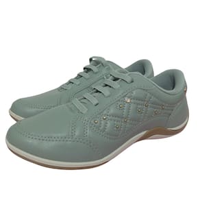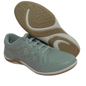 -Costuras diferenciadas e aplicações em cravos metalizados na lateral dando aquele glow -Cor verde musgo -Com pedrinha de strass brilhante -Material sintetico -Palmilha gel -Microfuros estrategicamente na região frontal, responsáveis por auxiliar na respirabilidade do pé ao longo do dia. - Sola em Trbicolor antiderrapante ***FORMA E CORRETA *** 34-23.5 CM 35-24 CM 36-24.5 CM 37-25 CM 38-25.5 CM 39-26 CM 40-26.5 CM