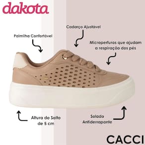 Este modelo da Dakota entrega uma combinação irresistível de estilo e funcionalidade, ideal para quem não abre mão de conforto sem deixar de lado um visual moderno. Seu design é pensado para acompanhar o ritmo do dia a dia, seja em momentos de lazer ou em compromissos mais casuais. A estrutura robusta traz presença ao visual, enquanto os detalhes em perfurações adicionam um toque diferenciado e sofisticado ao calçado.
