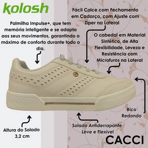 Sinta a leveza e o conforto a cada passo com a palmilha Impulse+, que tem memória inteligente e se adapta aos seus movimentos, garantindo o máximo de conforto durante todo o dia. Além disso, o calce fácil com elástico sobre o pé, otimiza o seu tempo e facilita o uso. A sola caixa de 3,2 cm, já consagrada pela marca Kolosh, oferece amortecimento e estabilidade, perfeita para você aproveitar cada momento.