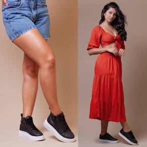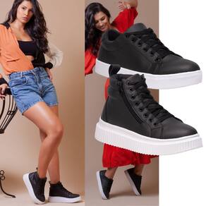 Tênis Feminino Preto + Coturno Plataforma Preto Dois Estilos Ousados Que Elevam Qualquer Look. - 35 - Preto