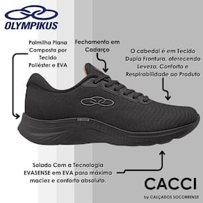 O Olympikus Atmos é pensado exclusivamente para o público feminino, um tênis minimalista, ideal para quem busca versatilidade e conforto. Seu solado possui a tecnologia de amortecimento Evasense, que proporciona leveza, maciez e maior flexibilidade para os corres do dia a dia. O cabedal é confeccionado com tecido dupla frontura, oferecendo leveza, conforto e respirabilidade ao produto. Conta com vista em high frequency com detalhes de brilho e relevo. Possui ainda, forro com espuma e atacador, ambos compostos por tecido poliéster texturizado.