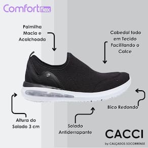 Você já conhece a tecnologia Airflex? Modelos com essa tecnologia, contam com uma bolha de nitrogênio no solado que absorvem o impacto a cada passo, gerando um caminhar macio e confortável. Para o auto cuidado dos seus pés, escolha calçados confortáveis, como nosso tênis Walk. Ele dispensa o uso de cadarços se ajustando perfeitamente aos pés, sem falar do seu calce fácil. Pode ser utilizado de forma casual ou para caminhadas leves. Você merece esse conforto!