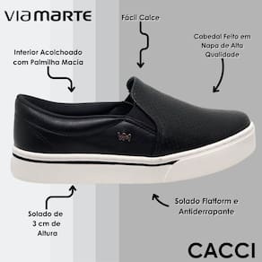 O Tênis Casual Via Marte apresenta um design estilo Slip-On, oferecendo facilidade ao calçar e um visual moderno. Com seu solado flatform antiderrapante ele traz mais firmeza e segurança ao caminhar.