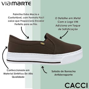 O Tênis Slip On Feminino Via Marte foi pensado para acompanhar a rotina da mulher moderna que busca praticidade sem abrir mão do estilo. Com um visual casual, atual e funcional, ele se adapta perfeitamente a diversas ocasiões, seja no trabalho, em passeios informais ou durante momentos de lazer nas estações mais amenas do ano. Seu cabedal em material sintético de alta qualidade garante resistência ao uso diário, mantendo o visual bonito por muito mais tempo. A palmilha anatômica acolchoada oferece conforto prolongado e excelente absorção de impacto, ideal para quem passa longas horas em pé ou em movimento. O modelo slip on, com elástico nas laterais, proporciona um ajuste firme ao pé e facilita o calce, tornando o dia a dia mais prático. Já o solado emborrachado com tração assegura estabilidade e segurança ao caminhar em diferentes superfícies. Com um design versátil que combina facilmente com jeans, vestidos, saias e outras peças do guarda-roupa, esse tênis é uma peça coringa que une leveza, conforto e estilo em uma única escolha. Aposte nesse modelo e sinta a diferença que um calçado inteligente pode fazer na sua rotina.
