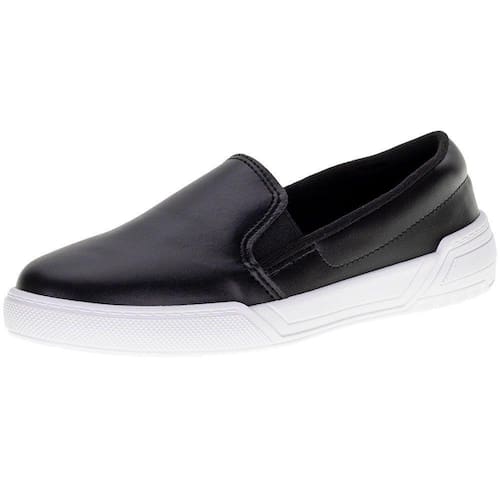O Tênis Feminino Slip On Moleca é confeccionado em Napa Sardenha Neo com acabamento em costura, forro interno em têxtil, palmilha em PU e solado em borracha antiderrapante.