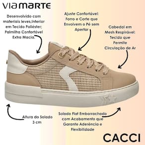 Esse modelo Via Marte foi desenvolvido para mulheres que buscam um calçado moderno, confortável e cheio de estilo para acompanhar a rotina. Seu cabedal em tecido mesh respirável garante ventilação constante, mantendo os pés frescos durante todo o uso, enquanto o forro interno acolchoado proporciona um encaixe suave e agradável. A palmilha anatômica com espuma macia reforça a sensação de conforto, tornando cada passo mais leve e relaxante mesmo em longos períodos de caminhada. O solado emborrachado com três centímetros de altura entrega flexibilidade, ótima aderência e estabilidade, ideal para diferentes tipos de solo, oferecendo segurança e liberdade de movimento em qualquer ocasião. Seu design versátil e contemporâneo permite combinações práticas, desde looks casuais até produções mais sofisticadas, valorizando tanto momentos descontraídos quanto situações que pedem um toque extra de estilo. A construção leve e resistente faz com que o modelo seja um aliado perfeito para o dia a dia, equilibrando conforto, durabilidade e elegância em um único calçado. Esse Via Marte é a escolha certa para quem deseja unir funcionalidade e moda em uma peça que se adapta facilmente a diferentes estilos e momentos.