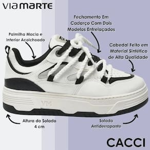 Esse tênis Via Marte foi desenvolvido para unir estilo moderno, conforto e praticidade no dia a dia. O cabedal em material sintético de alta qualidade garante durabilidade e um acabamento sofisticado, enquanto o fechamento em cadarço com dois modelos entrelaçados traz um charme exclusivo ao visual. Sua palmilha macia com interior acolchoado proporciona sensação de bem-estar desde o primeiro uso, evitando desconfortos mesmo após longas horas de caminhada. O solado antiderrapante com quatro centímetros de altura oferece mais estabilidade e segurança, além de valorizar o design robusto que está em alta. Versátil e cheio de personalidade, combina facilmente com diferentes estilos, desde produções casuais até looks mais despojados, tornando-se uma opção perfeita para acompanhar a rotina, passeios e encontros. Um modelo que garante elegância, conforto e atitude em cada detalhe.
