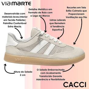 Esse modelo da Via Marte é perfeito para quem busca estilo e conforto no dia a dia. Ele foi desenvolvido com materiais leves e conta com interior em tecido poliéster e palmilha macia que proporciona sensação agradável durante o uso. Possui recortes em tela estilo colmeia que favorecem a ventilação dos pés, mantendo a respirabilidade mesmo em longos períodos.