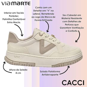 Esse tênis Via Marte foi desenvolvido para quem valoriza estilo e conforto em um único calçado. Seu cabedal em material resistente possui perfuros estratégicos que garantem ventilação, mantendo os pés frescos e agradáveis mesmo após longos períodos de uso. O interior é forrado em tecido poliéster macio, e a palmilha extra macia proporciona uma sensação de aconchego a cada pisada, tornando-o ideal para o dia a dia.