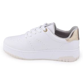 Tênis Via Marte 23-13105 é um modelo Casual para compôr diversos looks. Seu cabedal é fabricado em material sintético com acabamento em costuras e microfuros além de lindos detalhes dourados, todo forrado internamente proporcionando conforto e com fechamento em cadarço de amarrar para melhor ajuste. Sua palmilha interna é removível, macia e revestida em material têxtil apresentando a logo da marca. O solado flatform branco, possui 4cm de altura traseiro e 3cm de altura frontal, é confortável e traz segurança ao caminhar. Seu solado possui frisos para maior segurança.