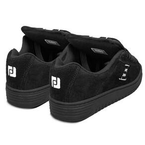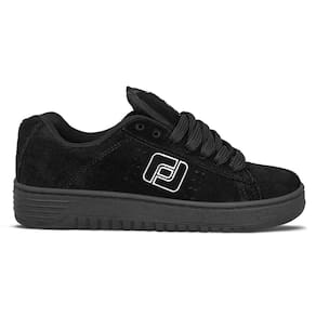 Cabedal em camurça premium resistente Forro interno acolchoado em tecido poliéster Palmilha em EVA termo moldado com memória Solado de borracha vulcanizada com costura reforçada Cadarço tradicional em algodão para ajuste firme Visual minimalista preto, fácil de combinar Estilo skateshoe versátil para looks urbanos e casuais