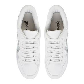 O Tênis Godiva Casual Feminino Branco Bronze possui design moderno e despojado, perfeito para compor os mais divertidos looks. Fabricado em material sintético de alta qualidade, seu cabedal é todo na cor branca, com detalhe na cor prata com acabamento em glitter, na lateral e na traseira, possui cadarços como forma de ajuste, também conta com forro interno revestido por material têxtil, sua palmilha é macia, composta por espuma e seu solado é emborrachada e possui altura elevada.