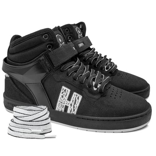 O 10º Pro Model assinado por Marcelo Formiga é uma síntese de seu legado, construído ao longo de sua história como skatista e nos 10 anos de parceria com a Hocks. O novo modelo, chamado 4MIGA DÉCIMO, é uma releitura do passado, com design fortemente inspirado nas antigas silhuetas assinadas por Formiga. O tênis apresenta elementos que reconhecem sua trajetória, como o formato da Pedra do Vale aplicada na lateral do cabedal, combinações de cores clássicas e texturas e materiais atualizados. O TPU diamantado, por exemplo, é inspirado na vista aérea das pedras do Vale do Anhangabaú, e a lingueta traz uma etiqueta alusiva ao modelo 4MIGA, aplicada sem costuras. Fita autocolante, característico dos modelos cano médio, é removível e apresenta uma tag Formiga camuflada com o Hocks em efeito lenticular. O cano do tênis é termo conformado com espuma de P.U de alta densidade para maior conforto e firmeza, e a lateral recebe uma proteção em TPU para maior durabilidade na região do ollie. Além disso, todas as cores acompanham cadarço especial extra