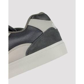 - Cabedal dividido em couro e tecido mesh;
