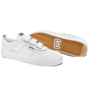 Com cabedal em couro branco natural e sintético PVC perfurado, o modelo traz a assinatura de Lorran Freitas em dourado, dando um toque exclusivo. As tiras auto colante substituem os cadarços, oferecendo mais praticidade e um ajuste anatômico que mantém o pé firme e confortável. A lingueta foi atualizada para garantir maior firmeza e prolongar o uso do tênis. O solado RubberMax, feito com borracha natural de alta densidade, proporciona excelente aderência e durabilidade, enquanto a palmilha FlexForm em P.U termo conformada oferece conforto e maior vida útil ao calçado.