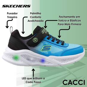 O Tênis Skechers Kids Sola Meteor-Lights é aquele toque mágico que transforma qualquer passo em pura diversão.